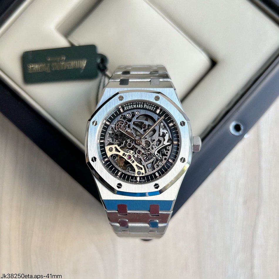 O SUPER CLONE MÁQUINA ETA – AUDEMARS PIGUET ROYAL OAK 41MM ESQUELETO é alimentado por um movimento de alta precisão. Seu mostrador esqueleto não apenas exibe a hora, mas também revela o intrincado trabalho interno do relógio, proporcionando uma visão fascinante do mecanismo de relojoaria em ação.