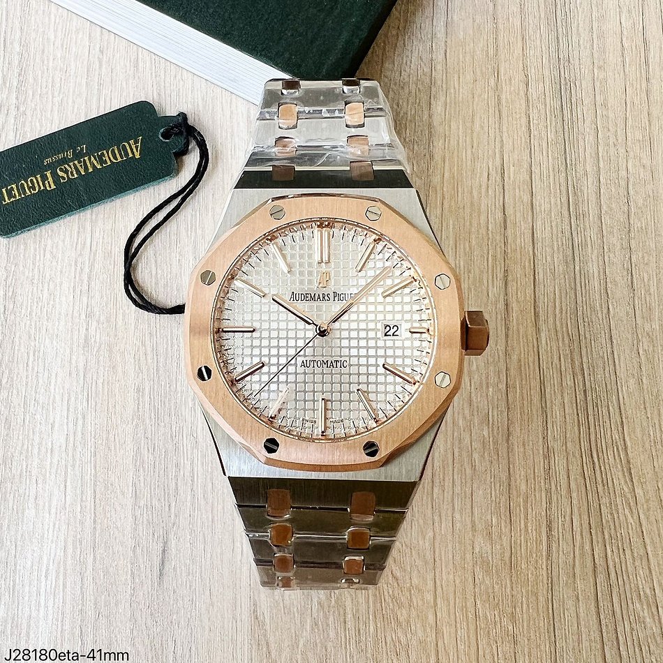 Super Clone Máquina ETA – Audemars Piguet Royal Oak 41mm Prata Rose é um verdadeiro símbolo de elegância e precisão. Seu tamanho de 41 mm x 10,5 mm o torna adequado para qualquer ocasião, do dia a dia aos eventos mais sofisticados. O movimento automático 3120 garante uma precisão impressionante, com uma frequência de 28,800 vibrações por hora.