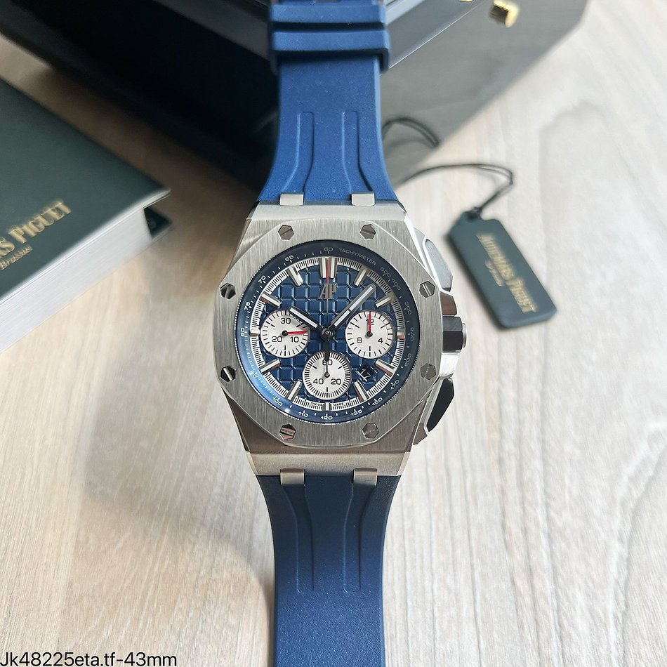 SUPER CLONE MÁQUINA ETA – AUDEMARS PIGUET ROYAL OAK OFFSHORE 43MM AZUL é uma obra-prima da relojoaria que combina elegância, durabilidade e desempenho excepcionais. Seu tamanho de 43 mm x 16 mm proporciona uma presença robusta no pulso, garantindo que ele não passe despercebido.