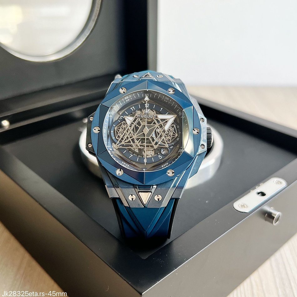 Explore o epitome do estilo e da precisão com o Super Clone Máquina ETA da renomada série Hublot Big Bang Sang Blue II. Esta obra-prima redefinida em cerâmica azul de 45mm x 15.5mm incorpora o melhor da engenharia de cronógrafos automáticos.
