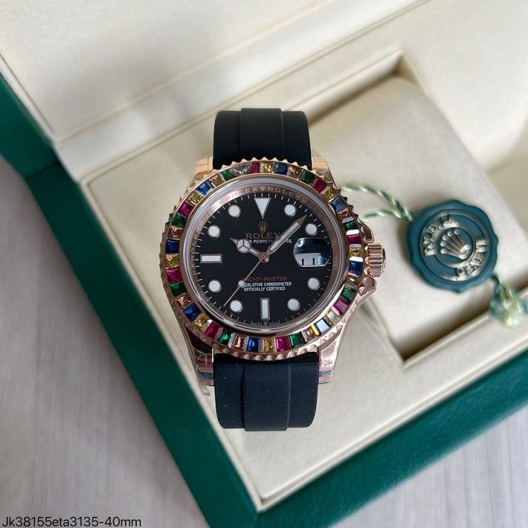 Super Clone Máquina ETA Rolex Yacht Master Rose com Brilhante Oysterflex 40mm Tutti Fruit é uma verdadeira maravilha de engenharia relojoeira. Com um tamanho de 40mm x 13mm, este relógio se destaca em qualquer pulso, proporcionando uma presença marcante e elegante. Seu movimento automático Super Clone 3135 garante uma precisão excepcional, operando a uma frequência de 28.800 vibrações por hora para manter o tempo com confiabilidade.